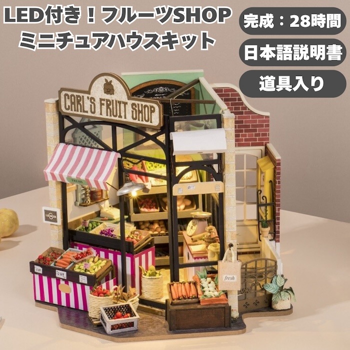 つくるんです DG142 フルーツショップ ミニチュアハウス DIY 組立キット LED付き 木製 インテリア 雑貨