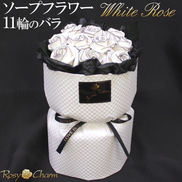 ソープフラワー 花束 11輪のバラ 【白いバラ】そのまま飾れるスタンディングブーケ|誕生日プレゼント