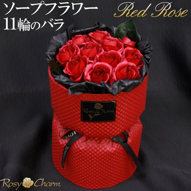 ソープフラワー 花束 11輪のバラ 【赤いバラ】そのまま飾れるスタンディングブーケ