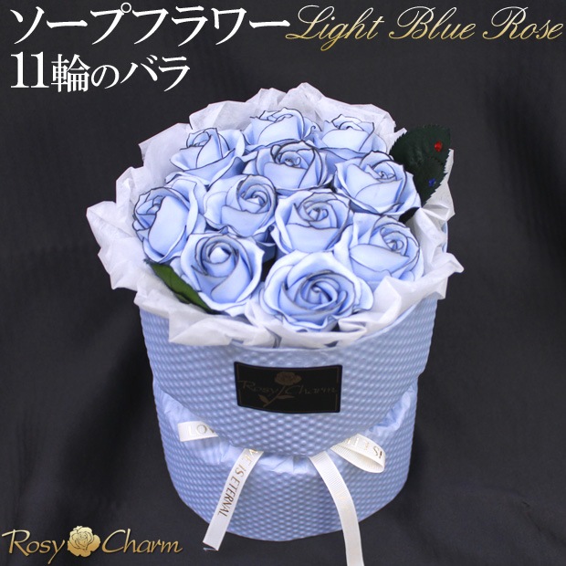 ソープフラワー 花束 11輪のバラ 【水色のバラ】そのまま飾れるスタンディングブーケ|誕生日プレゼント