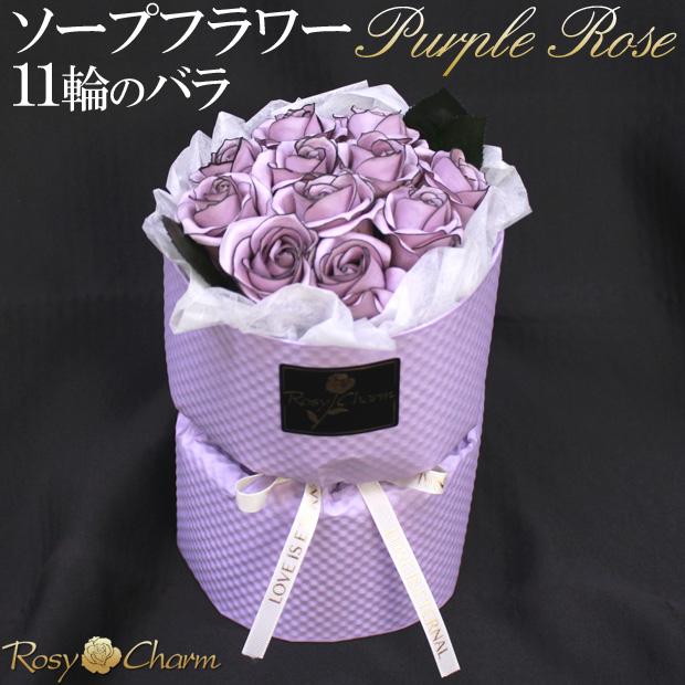 ソープフラワー 花束 11輪のバラ 【紫のバラ】そのまま飾れるスタンディングブーケ|誕生日プレゼント