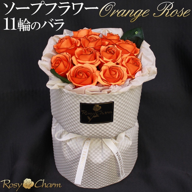 ソープフラワー 花束 11輪のバラ 【オレンジのバラ】そのまま飾れるスタンディングブーケ
