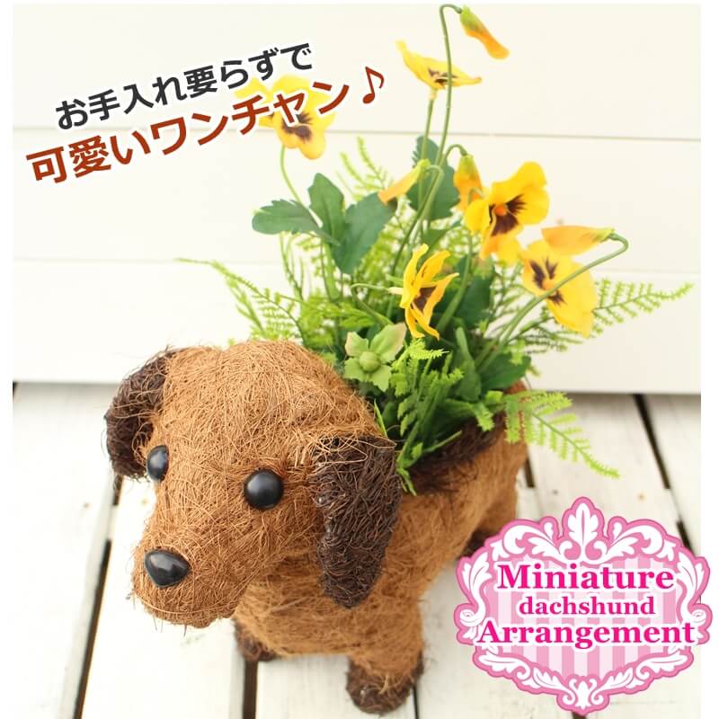 ラブリーフラワーアレンジメント/ダックスフンド/フラワー/ドッグ/アートフラワー/アレンジメント/母の日ギフト/お祝/ラッピング無...