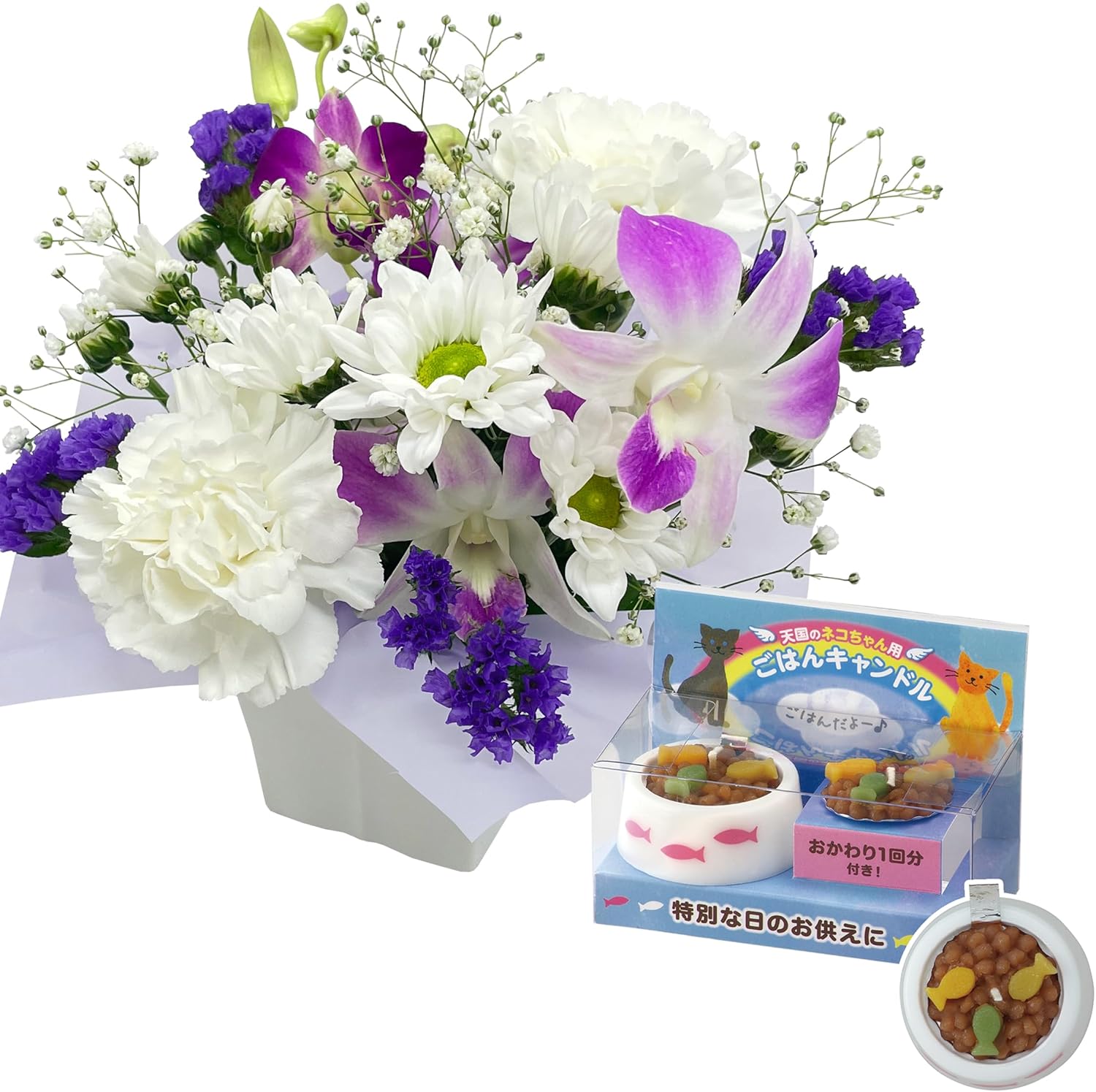 お悔やみのお花 命日 お彼岸 夏ギフト 猫 ネコ お供え お盆のお供え 好物キャンドル