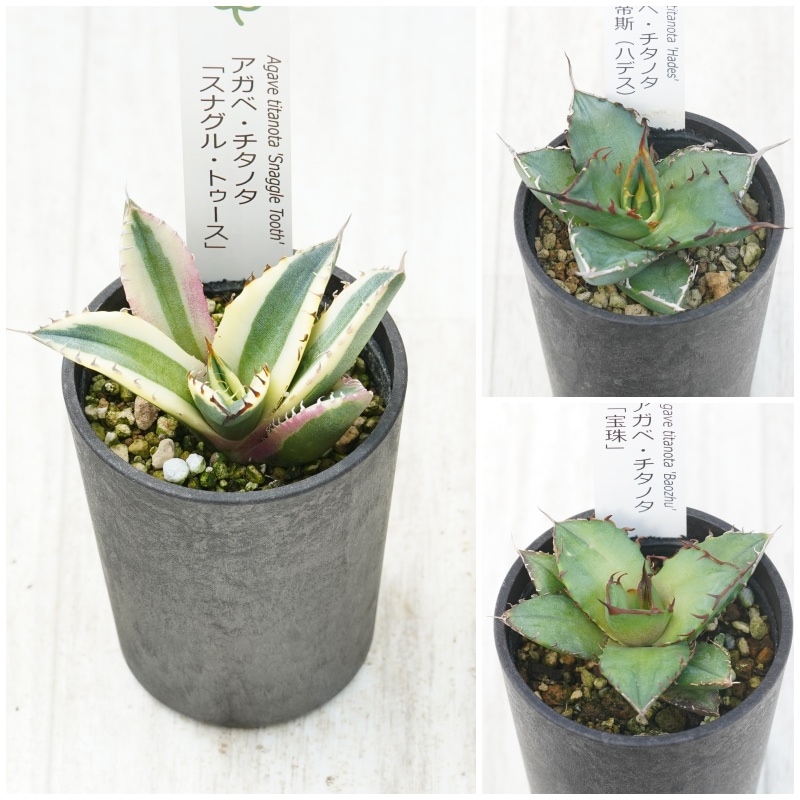アガベ チタノタ銘品 3種セット(スナグルトゥース・ハデス・宝珠) 2.5号鉢
