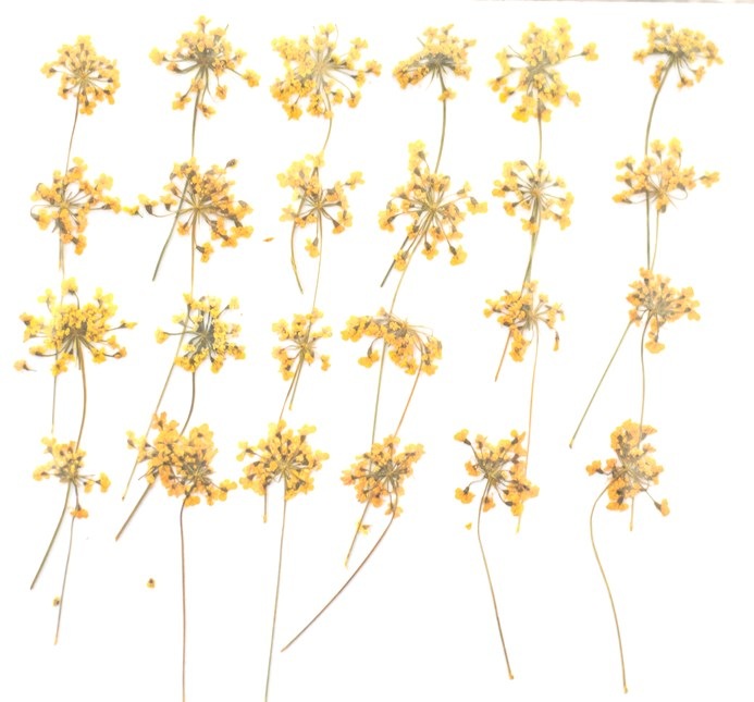 1-202HY 押し花 レースフラワー柄付 黄色染め 24輪