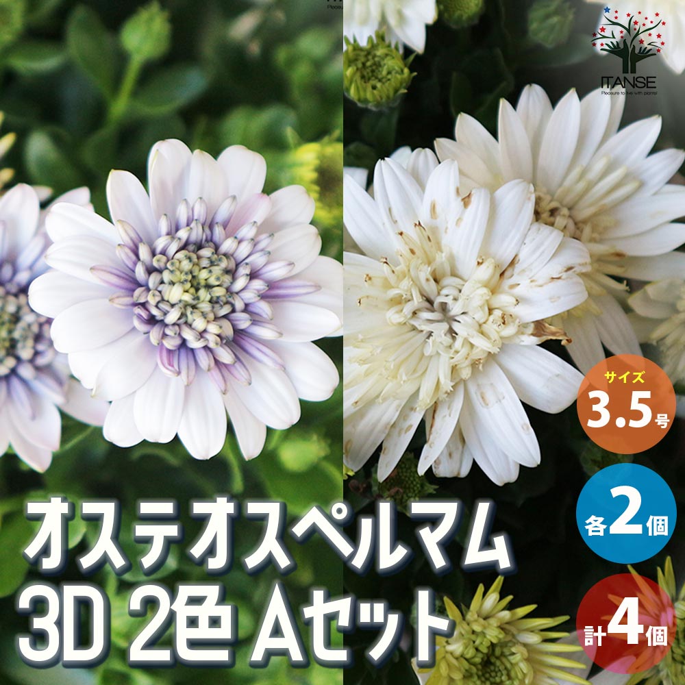 オステオスペルマム (ダブルオステオスペルマム)2品種 各1個セット【花苗 3.5号鉢/お買い得4個セット】