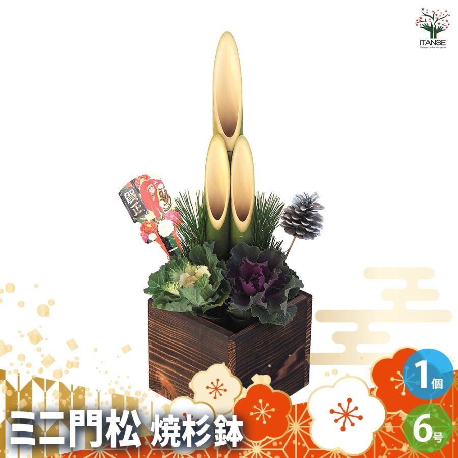 門松(かどまつ) ミニ門松 焼き杉鉢 【正月飾り 6号鉢】