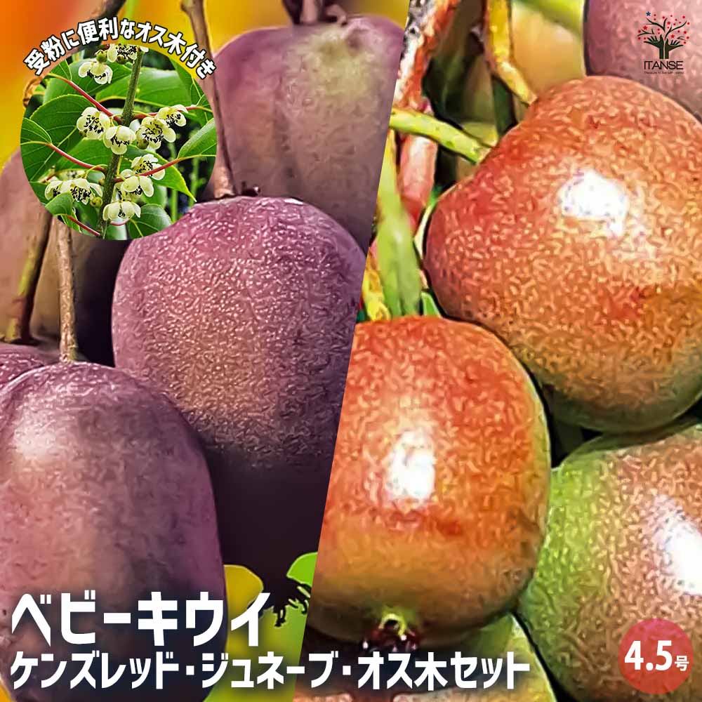 ベビーキウイの苗木 3種セット(ケンズレッド・ジュネーブ・オス木) 【果樹の苗木 4.5号ポット/1個売り】