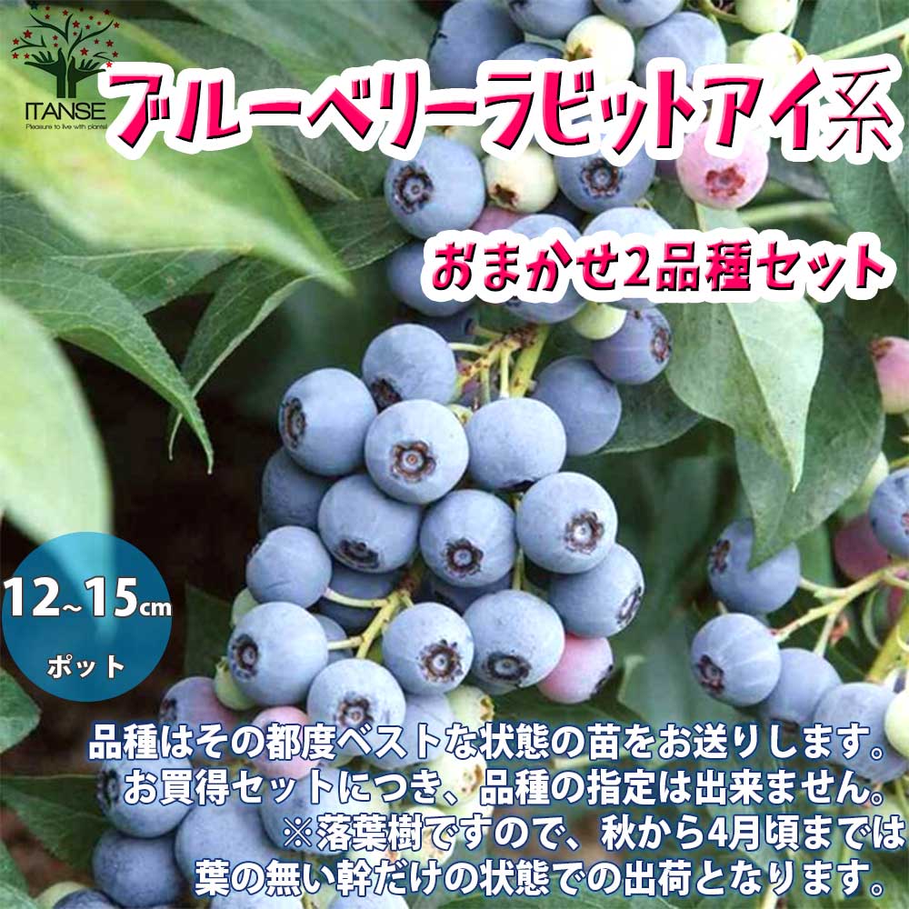 ブルーベリーの苗木ラビットアイ系 おまかせ2品種各1個セット【果樹の苗木 12~15cmポット/お買い得2個セット】
