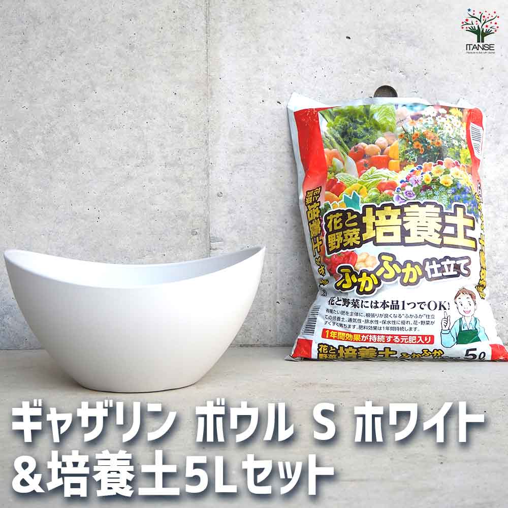 ギャザリン ボウル ホワイト 【資材 Sサイズ&花と野菜の培養土 ふかふか仕立て5L】