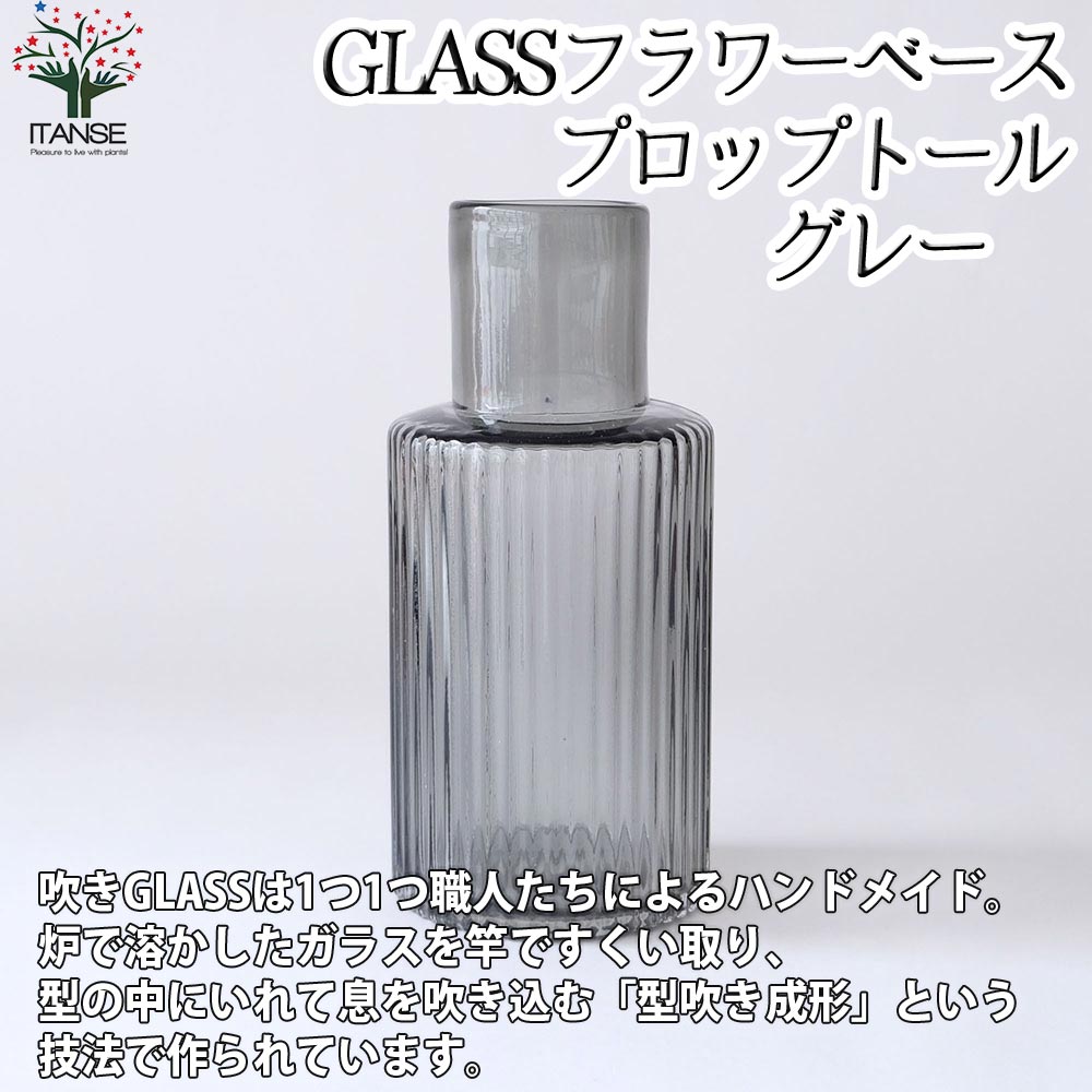 GLASSフラワーベース プロップトール・グレー【吹きガラス/Size:底面直径12.5cm×高さ27cm/品番:107770GY...