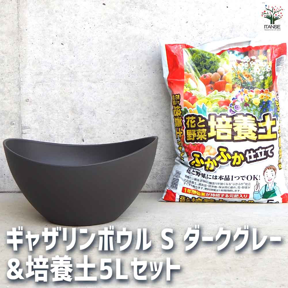 ギャザリン ボウル ダークグレー 【資材 Sサイズ&花と野菜の培養土 ふかふか仕立て5L】