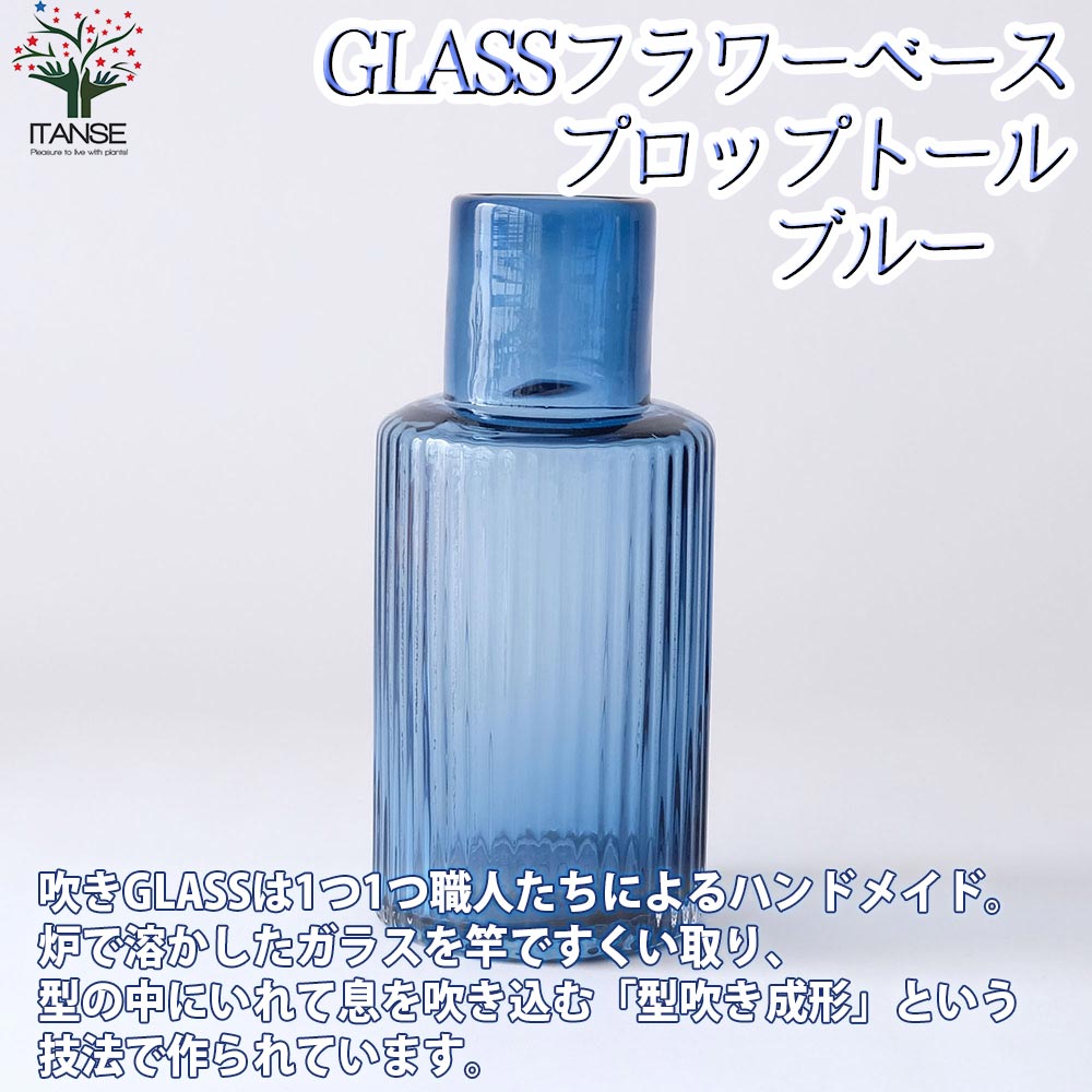 GLASSフラワーベース プロップトール・ブルー【吹きガラス/Size:底面直径12.5cm×高さ27cm/品番:107770BL...
