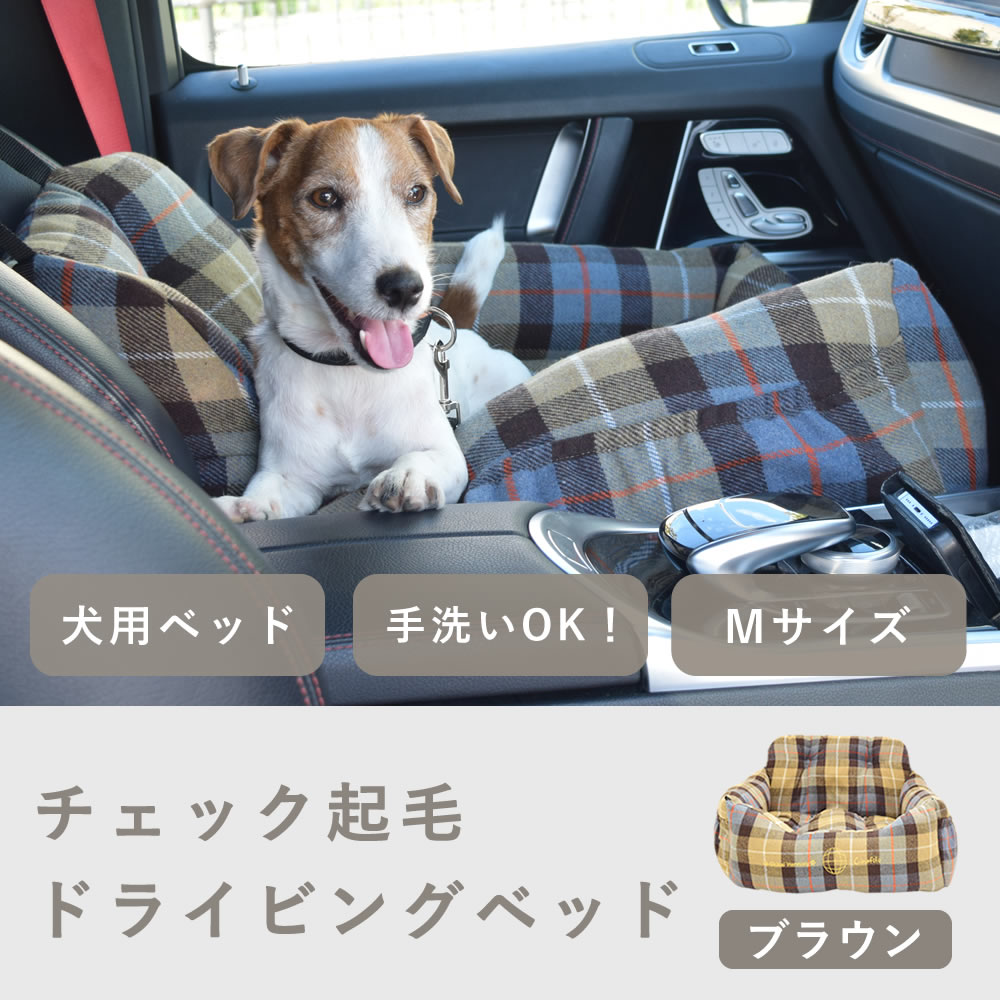愛 犬用ベッド チェック起毛ドライビングベッド Mサイズ ブラウン 【チノフィロ】