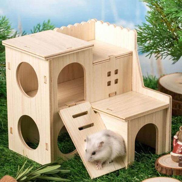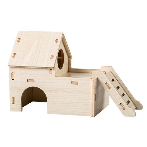ハムスター 小動物用 ハウス 木製 170×150×160mm 2階 スロープ付き 組み立て簡単 お手入れ簡単 遊び場 運動 スト...