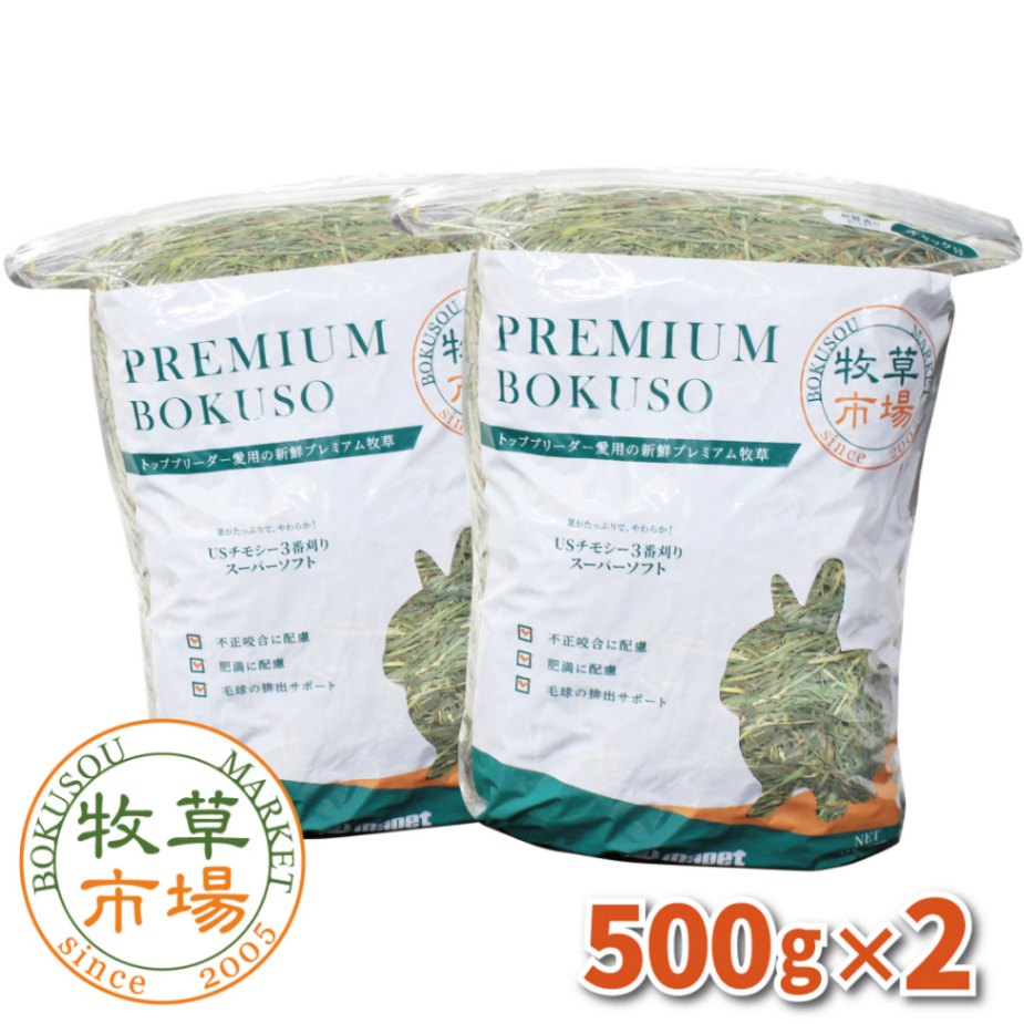 牧草市場 USチモシー2番刈りプレミアム牧草ダブルプレス1kg(500g×2パック)
