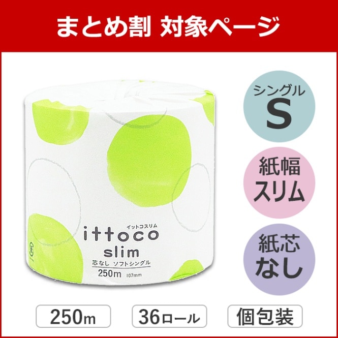【まとめ割対象】 イットコ 芯なし スリム幅(107mm) 1ロール 250m 36ロール シングル 10250009 5倍巻き ...