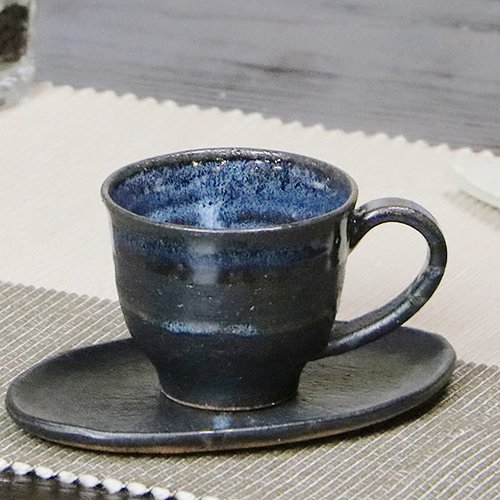 信楽焼 青ビードロ珈琲カップ コーヒーカップ コーヒー碗皿 choice-no18