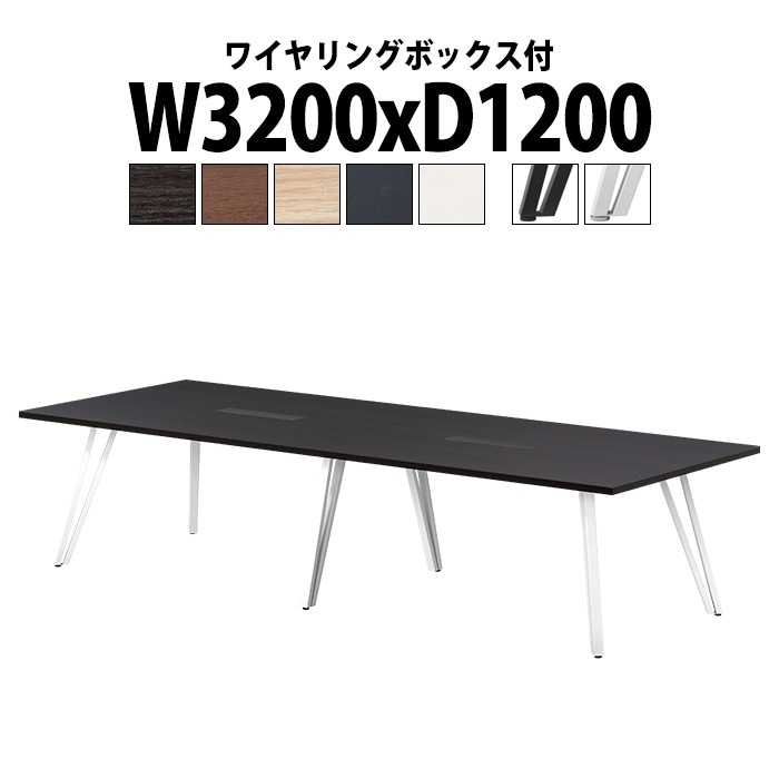 会議テーブル ミーティングテーブル 8人 E-VTW-3212W サイズ 幅3200x奥行1200x高さ720mm 角型 配線ボッ...