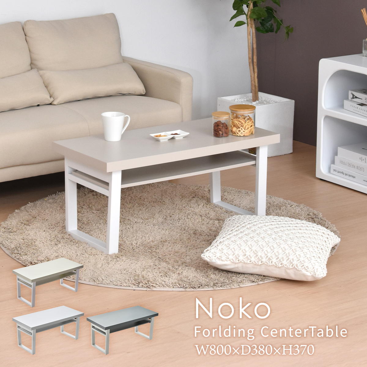 折りたたみテーブル 完成品 80cm ホワイト センターテーブル