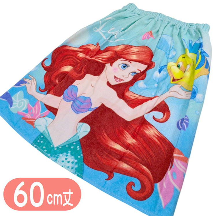 ラップタオル リトルマーメイド シャボンインザシー アリエル 丸眞 60cm丈 巻きタオル ディズニー プリンセス キャラクター ...