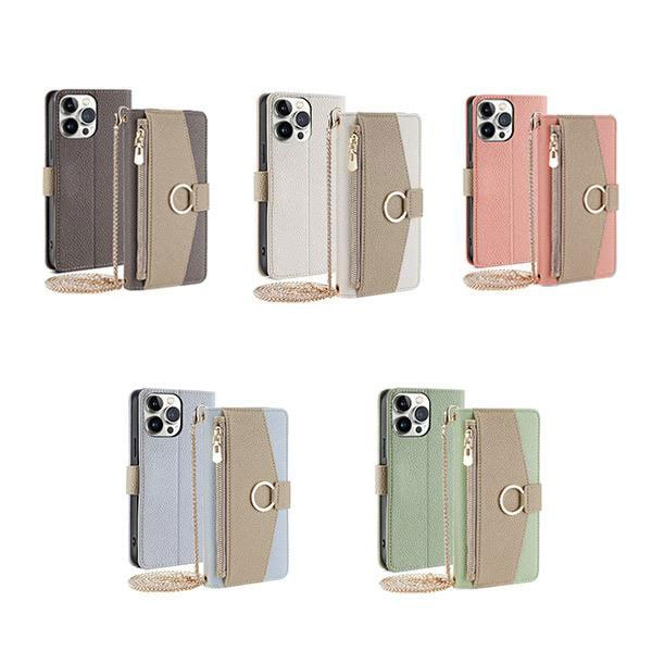 iPhone15 スマホケース 手帳 チェーンストラップ付き スタンド付き カードホルダー付き ミラー ショルダー 耐衝撃 PUレ...