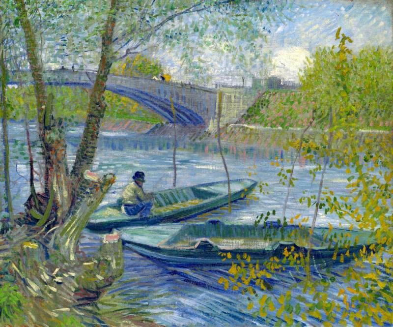 絵画風 壁紙ポスター(はがせるシール式)【フルサイズ版】 フィンセント ファン ゴッホ 春の釣り 1887年 シカゴ美術館 キャラ...