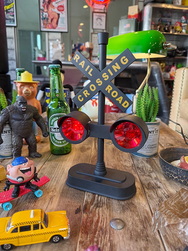 アメリカの踏切ライト オブジェ ※電池カバーのフタに難あり