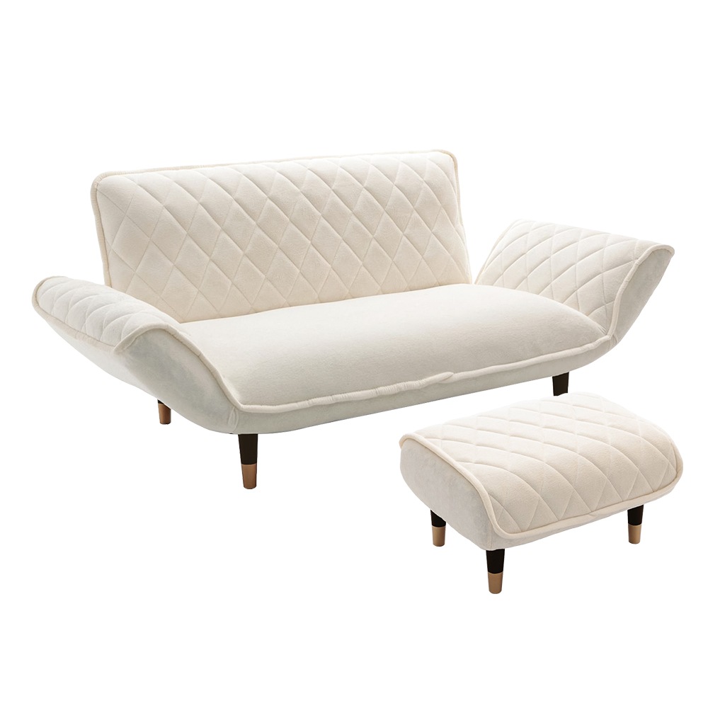 大人かわいい ダイヤモンドキルトカウチソファ オットマンセット 【Chammy -チャミー-】 SH-07-OKDK2P-S-WH...