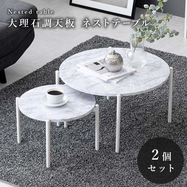 ネストテーブル サイドテーブル スリム 大理石調 2個セット おしゃれ 円形