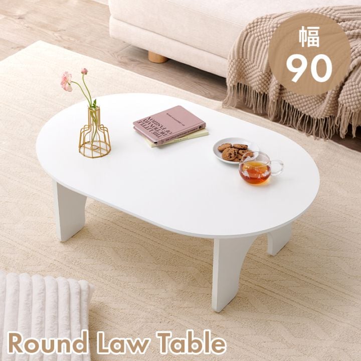 センターテーブル 楕円 ローテーブル おしゃれ 木製 北欧 ホワイト 90cm