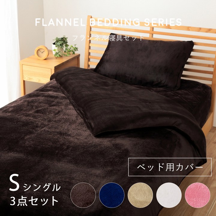 フランネルベッドカバー3点セット(枕カバー 掛け布団カバー 敷きパッド一体型ボックスシーツ)