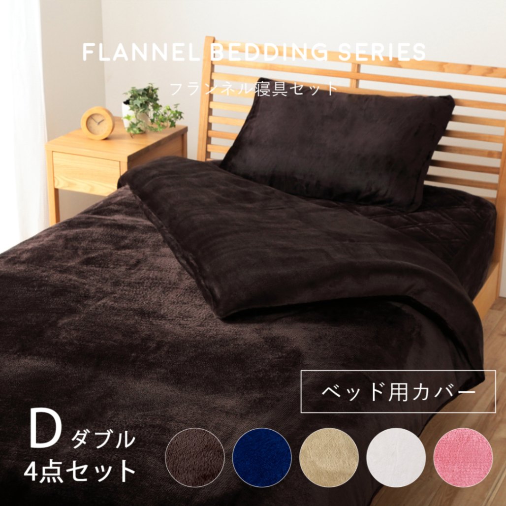 フランネルベッドカバー4点セット ダブル(枕カバー2点 掛け布団カバー 敷きパッド一体型ボックスシーツ)
