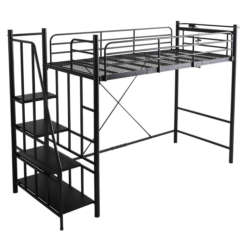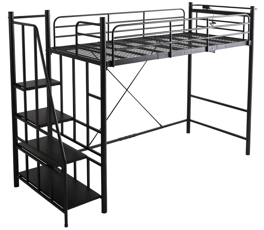 北欧インテリア 階段付き パイプロフトベッド【Levata-レヴァタ-】 HOHT70-102-BK ブラック