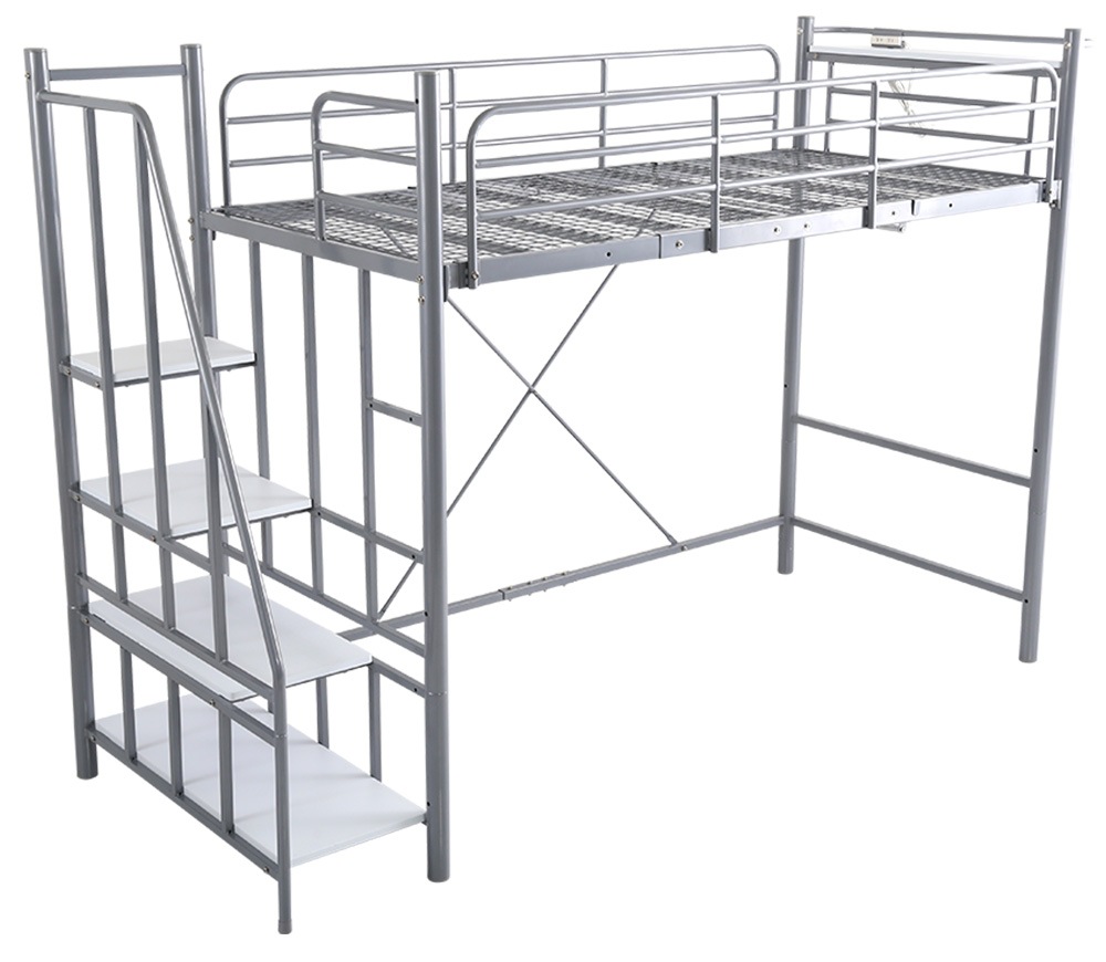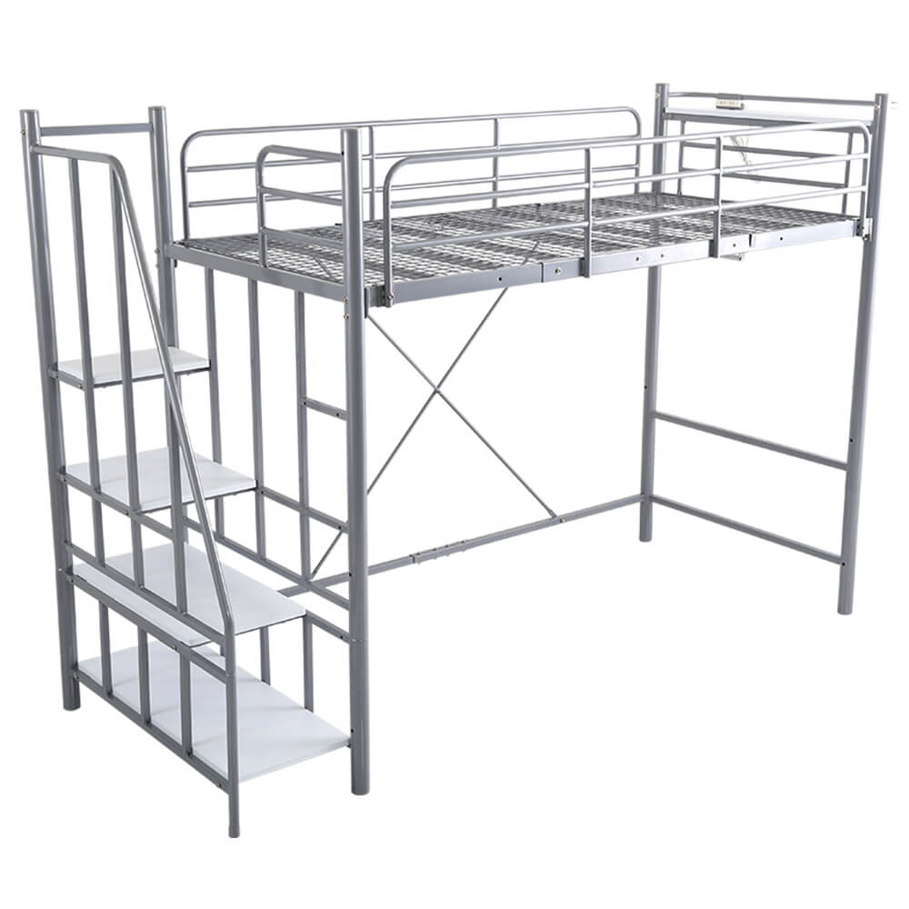 北欧インテリア 階段付き パイプロフトベッド【Levata-レヴァタ-】 HOHT70-102-SL シルバー