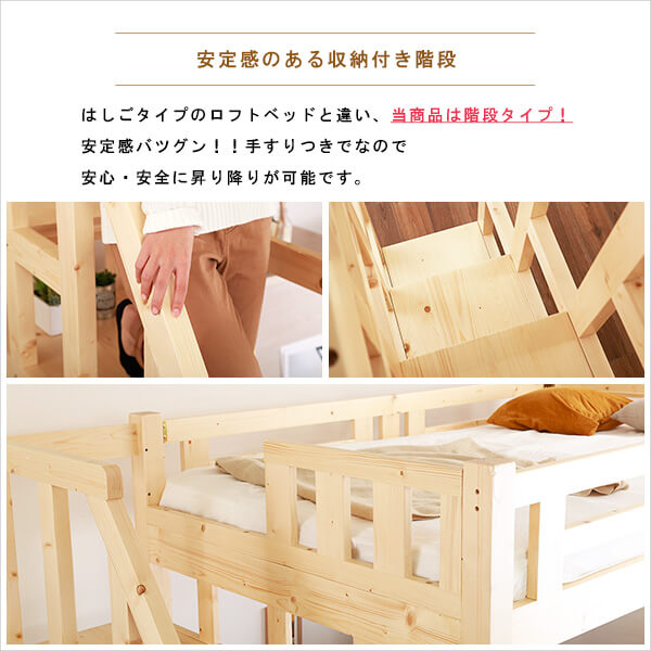 ロフト下に自由な空間を 階段付きロフトベッド【YOUICK-ユーイック-】 HT-0600-NA ナチュラル