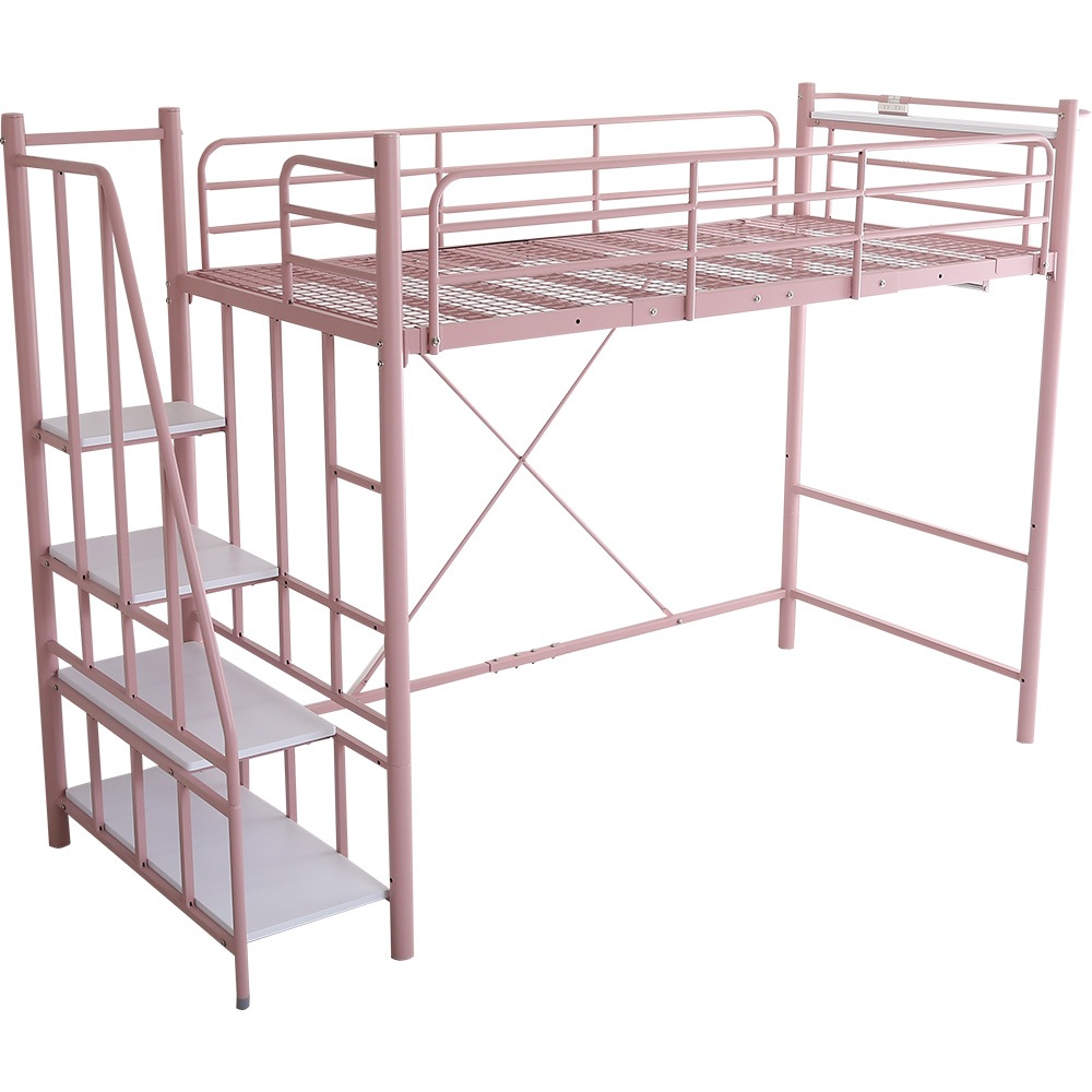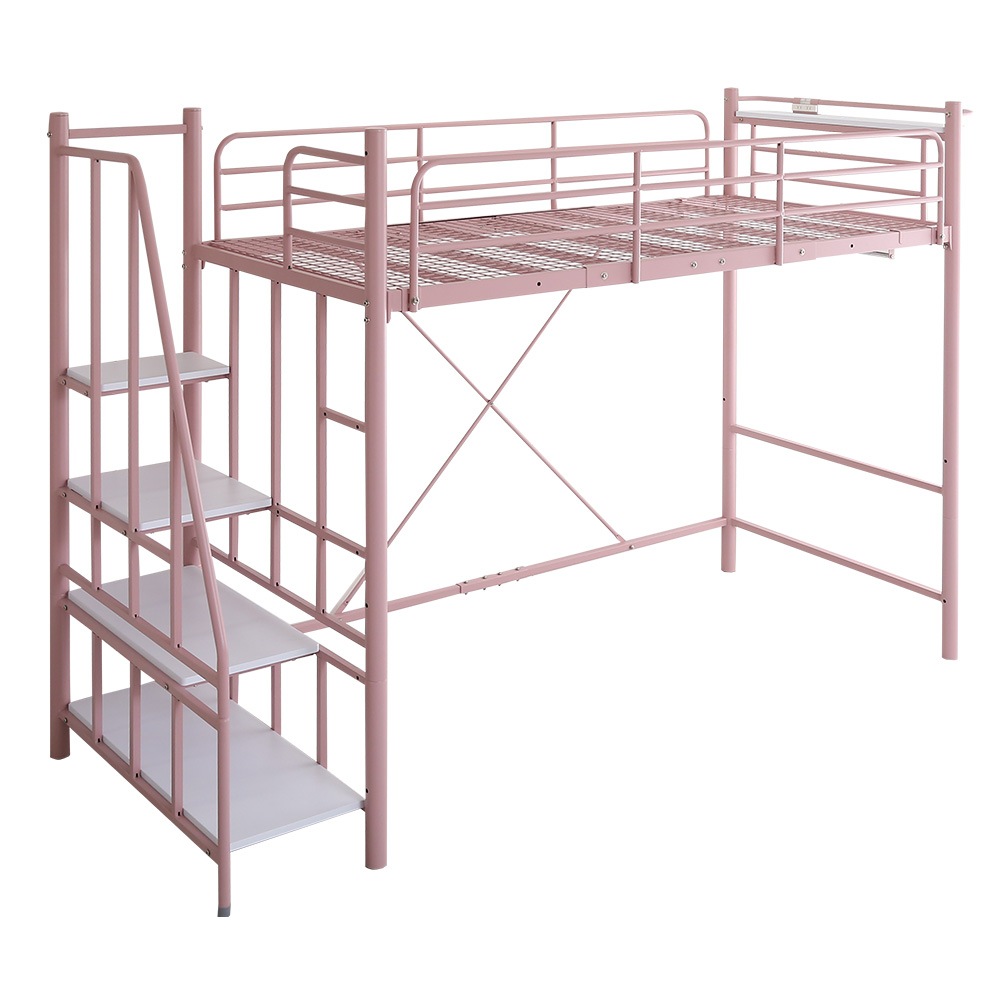 北欧インテリア 階段付き パイプロフトベッド【Levata-レヴァタ-】 HOHT70-102-PK ピンク