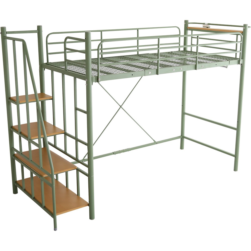 北欧インテリア 階段付き パイプロフトベッド【Levata-レヴァタ-】 HOHT70-102-GE グリーン