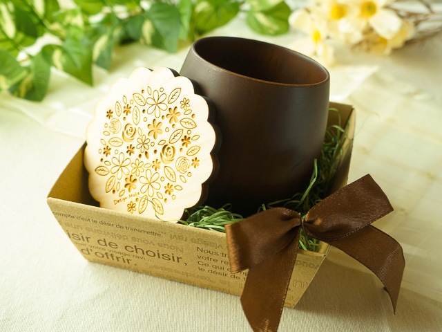 木の湯のみと季節の小柄コースターギフトセット