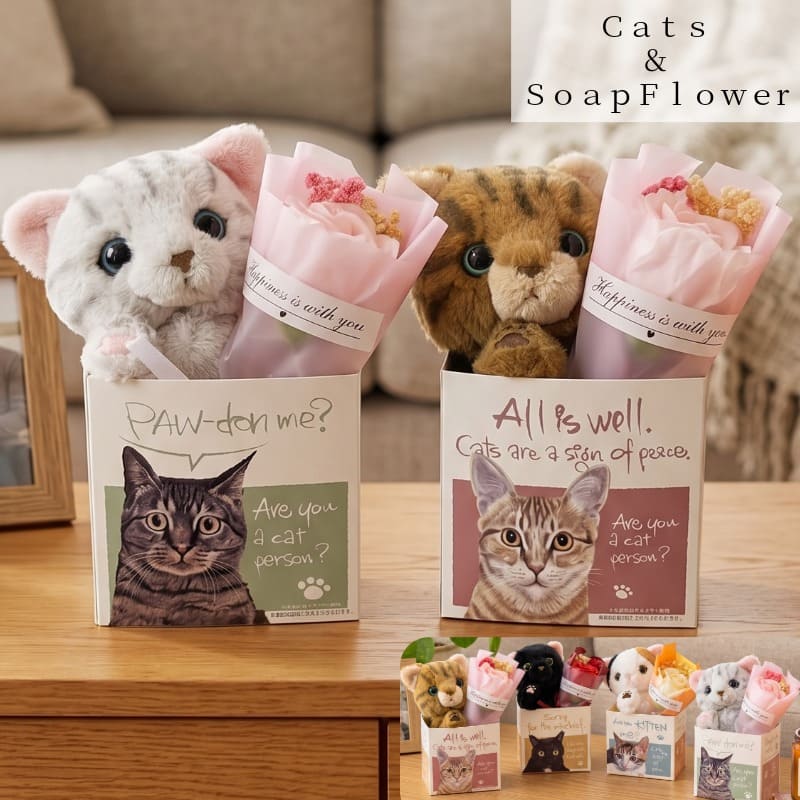 母の日 ギフト 猫 ぬいぐるみ ソープフラワー 花束 かわいい フラワーギフト カーネーション バラ 石鹸フラワー プレゼント T...