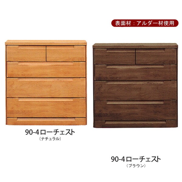 ローチェスト タンス たんす 幅90cm 4段 引出し箱組み レール付き 底板12mm ナチュラル ブラウン 日本製