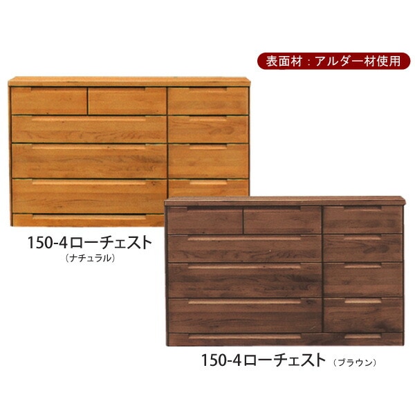ローチェスト タンス たんす 幅150cm 4段 引出し箱組み レール付き 底板12mm ナチュラル ブラウン 日本製