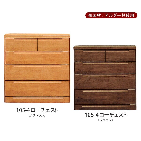 ローチェスト タンス たんす 幅105cm 4段 引出し箱組み レール付き 底板12mm ナチュラル ブラウン 日本製