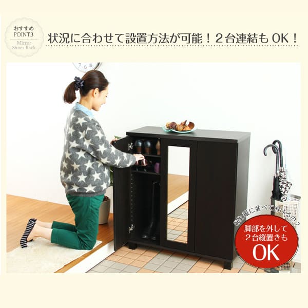 ミラー付きコンパクトシューズラック【-Refre-リフレ】(下駄箱・シューズボックス)ETS-9030-DBR ダークブラウン