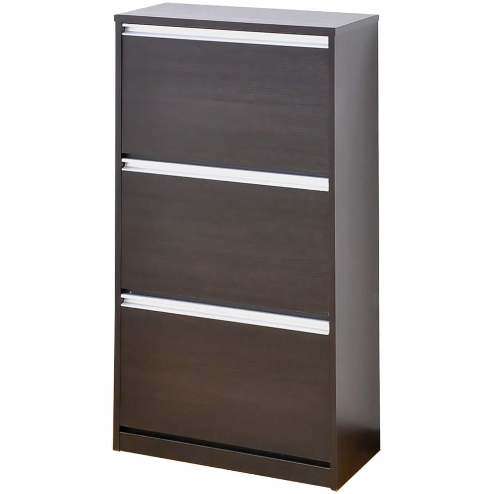 フラップ式シューズボックス【Patan】3段タイプ SBF-F3-DBR ダークブラウン