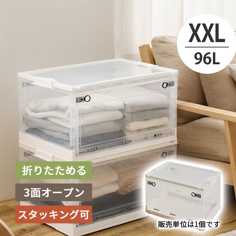 [4524370488788] 240653114 折り畳み収納ケース XXL クリア 68x47x37cm 収納ボックス 大容量...