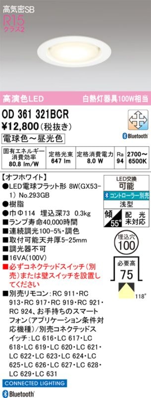 オーデリック OD361321BCR ダウンライト白熱灯100W形相当<埋込穴100φ 電球色~昼光色[調光・調色 Bluetoo...