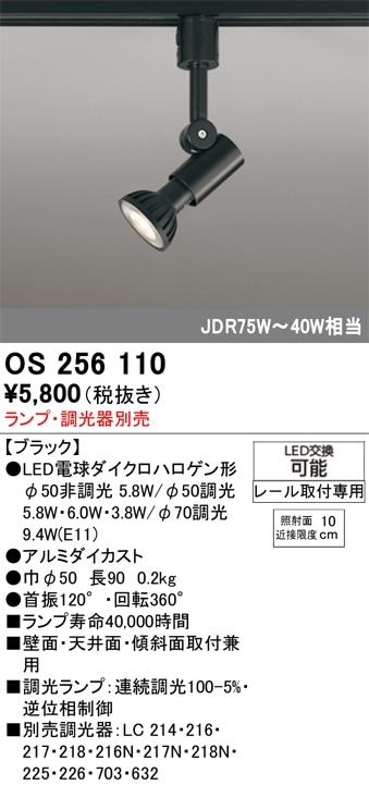 オーデリック OS256108<LED交換・調光可能・JDR75W~40W相当>ライティングレール/専用スポットライト(ホワイト)