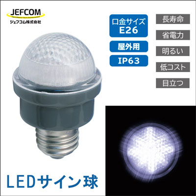 PC12W-E26-W || 屋外用LEDサイン球 ジェフコム 【白色】 E26口金 保護等級(IP63/口金部除く) AC100...